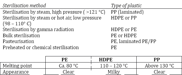 The sterilisation method in particular determines the choice of the plastic. (See image)