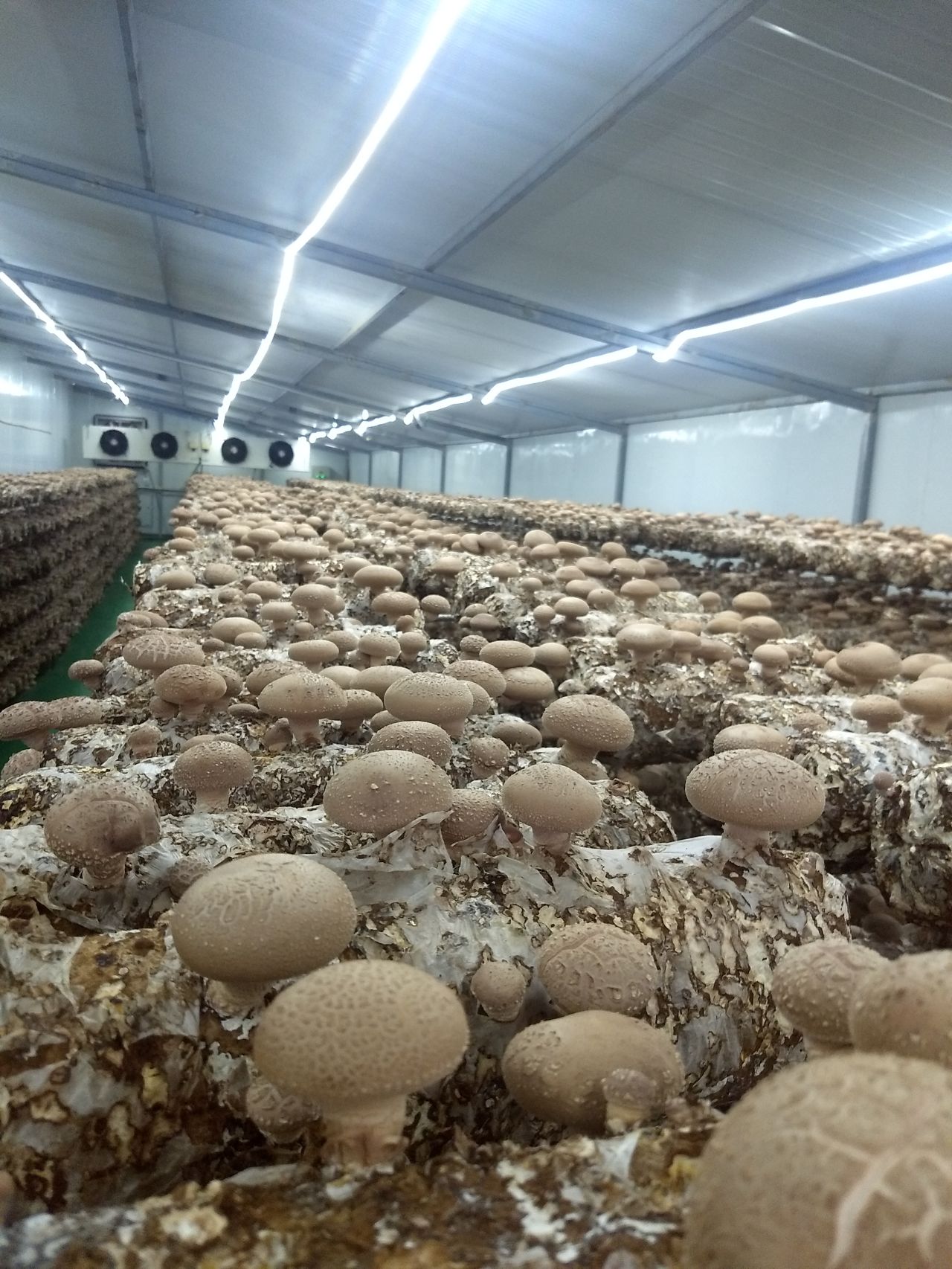 Smaller bags (e.g. 1,2 kg substrate) in general give a higher yield but the handling cost is higher, too. The efficiency in the farm may be lower as well, for shiitake production the bags need space on all sides; other mushrooms like King oyster or nameko can be forced to have only pinning on top of the bags and can thus be spaced close to each other.