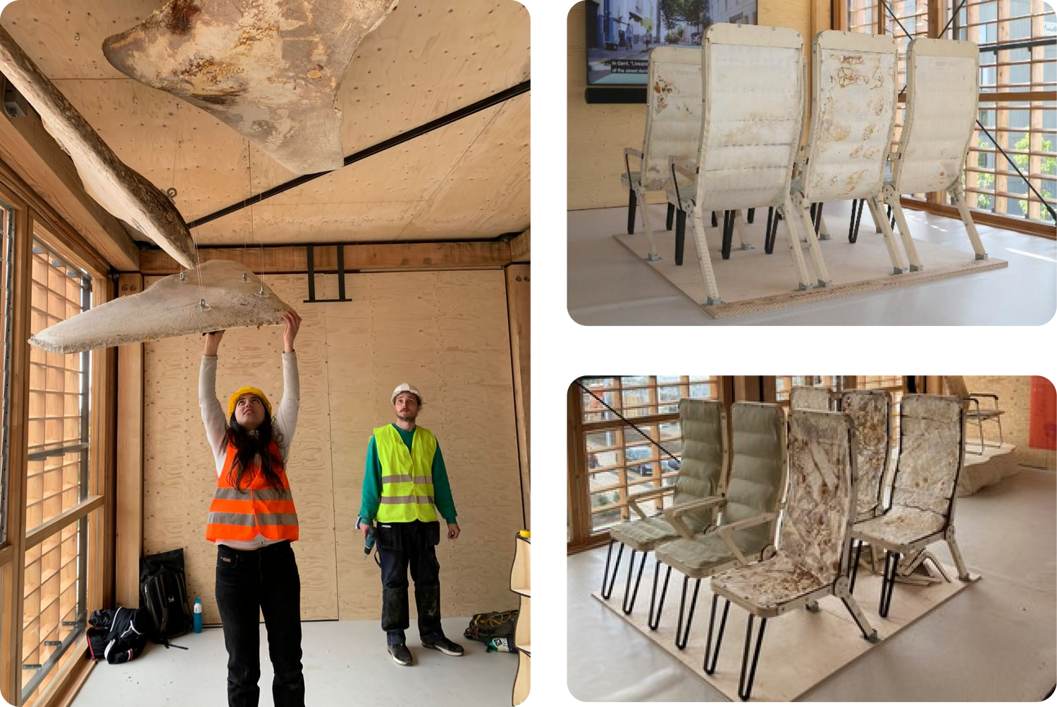 by Rabobank, Airbus and Ministry of Infrastructure to develop new materials, like carbon fiber colted plates fully grown with mycelium. Some of the results were shown at Floriade World Expo, like the mycelium airplane seats with a combination of wood, pregrown mycelium textile, and mycelium composite.